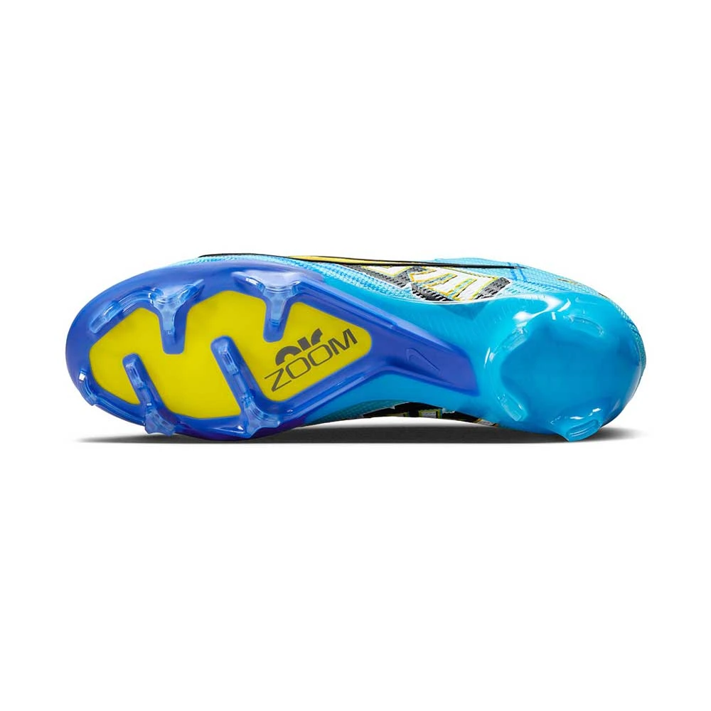 Kylian Mbappé’s explosiveness, plus his twitchy change of direction, puts him firmly in the world class of finishers. With nods to his heritage, this cleat is made to help you play just like KM—with blinding pace and purpose. We added a Zoom Air unit, made specifically for soccer, and grippy texture up top for exceptional touch, so you can dominate in the waning minutes of a match—when it matters most.